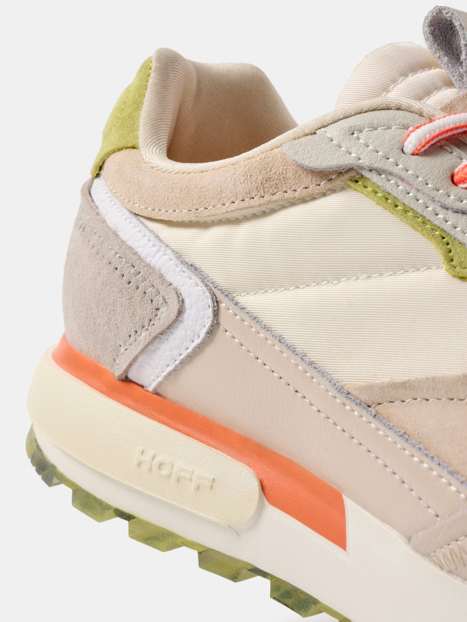 Inspired by the diversity and rich culture of the ACONCAGUA tribe. these sneakers boast a sleeker silhouette yet with a robust sole. making them the perfect piece. The blend of fabrics and cream tones. contrasted by the vibrant orange of the laces. front mesh. and sole detailing. presents a unique fusion. Combining leather. suede. and fabric. these shoes not only showcase exceptional details but also encapsulate the epitome of design and originality. Ideal companions for your everyday ventures. these sneakers provide comfort through the memory foam insole. The tribal-inspired patterns on the sole add a distinctive touch to your look.