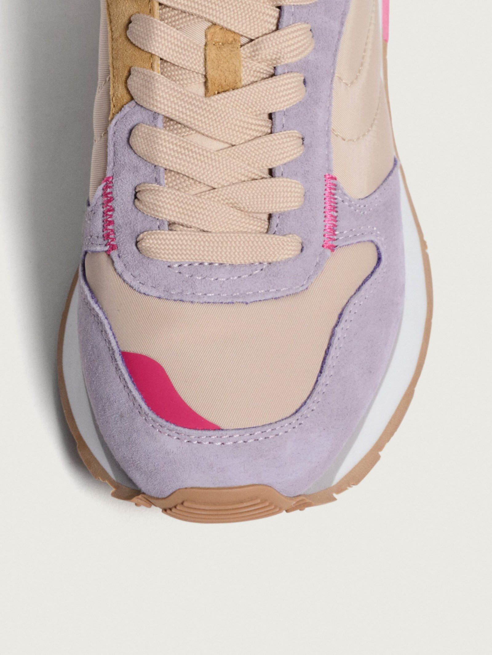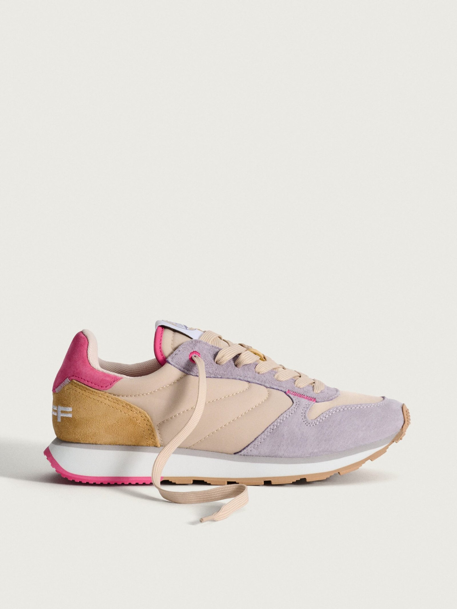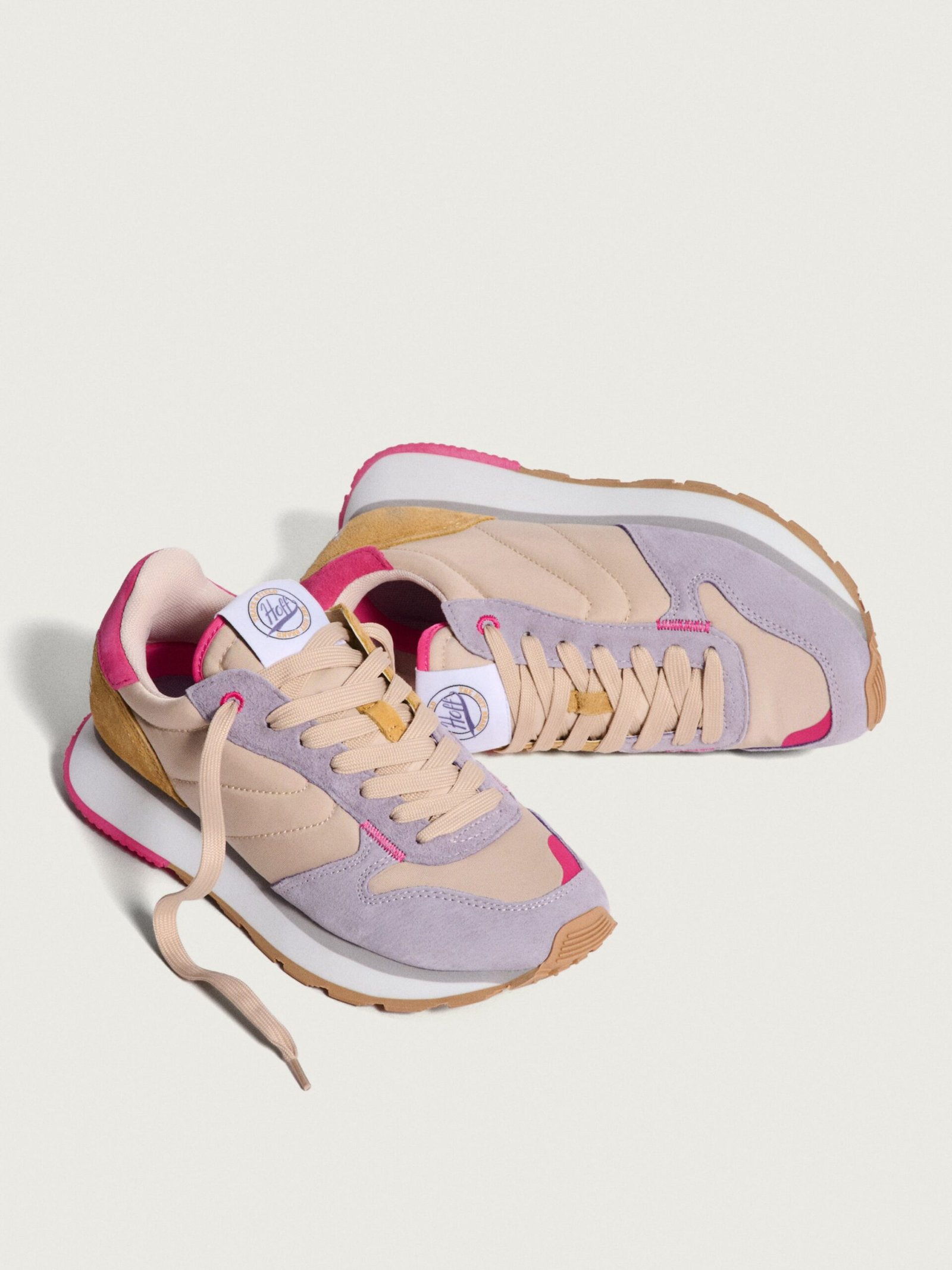 Inspired by athletes. created for your daily life. We love these AEGINA sneakers with their balanced mix of leather and textile. providing the resistance of a retro sports shoe with the aesthetics of contemporary fashion. The robust rubber sole is designed for everyday use. ensuring comfort with every step. The pink tones and green details add character and freshness to the silhouette. Combine them with a bomber jacket for an athletic-chic look. or with jeans and a shirt for a more urban and relaxed touch.