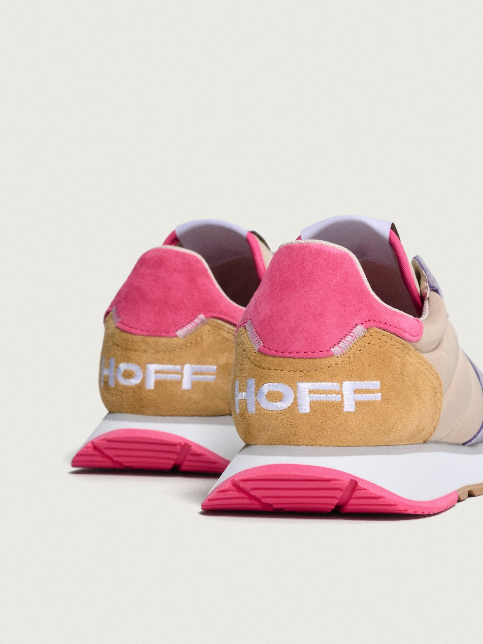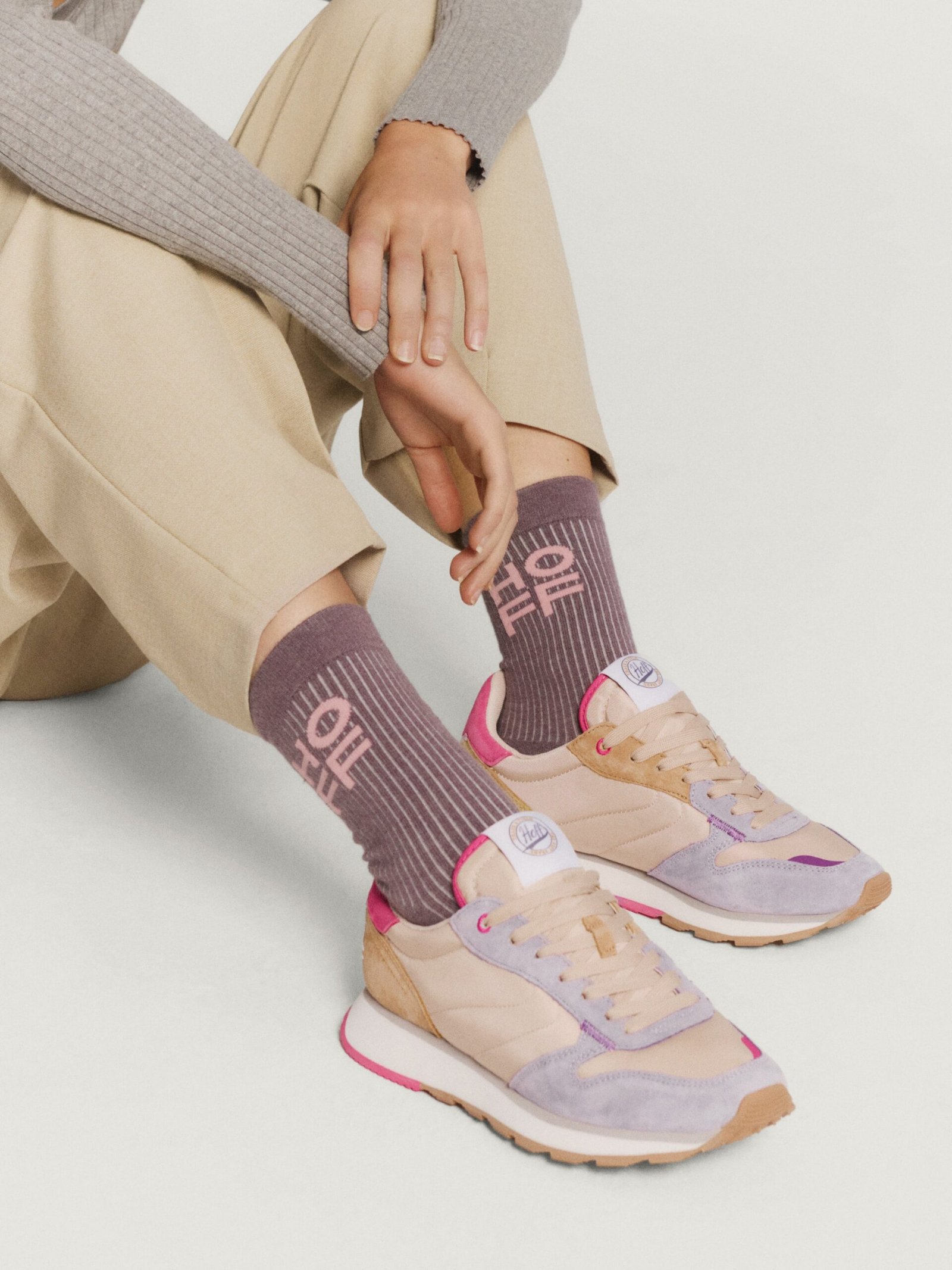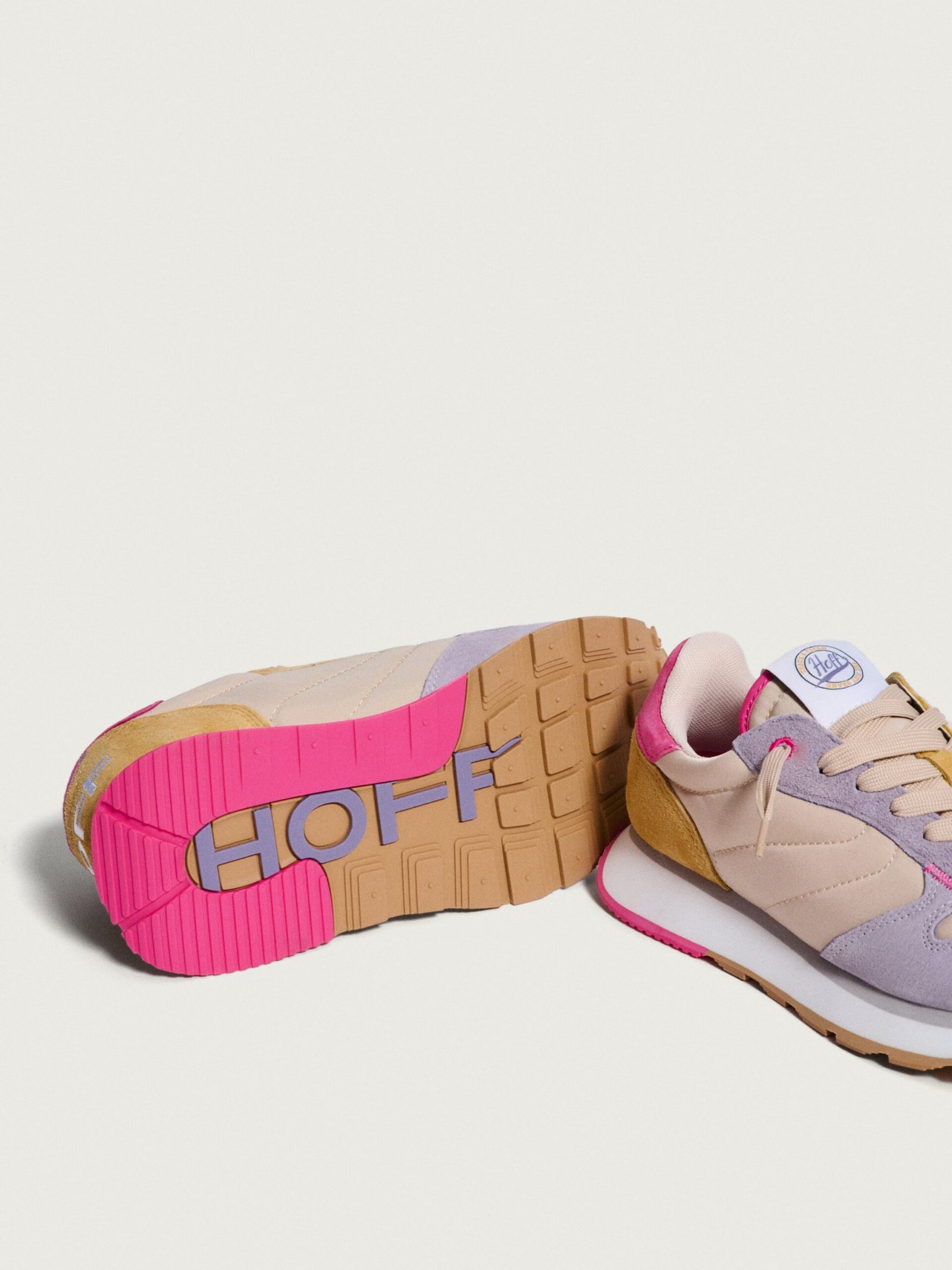 Inspired by athletes. created for your daily life. We love these AEGINA sneakers with their balanced mix of leather and textile. providing the resistance of a retro sports shoe with the aesthetics of contemporary fashion. The robust rubber sole is designed for everyday use. ensuring comfort with every step. The pink tones and green details add character and freshness to the silhouette. Combine them with a bomber jacket for an athletic-chic look. or with jeans and a shirt for a more urban and relaxed touch.