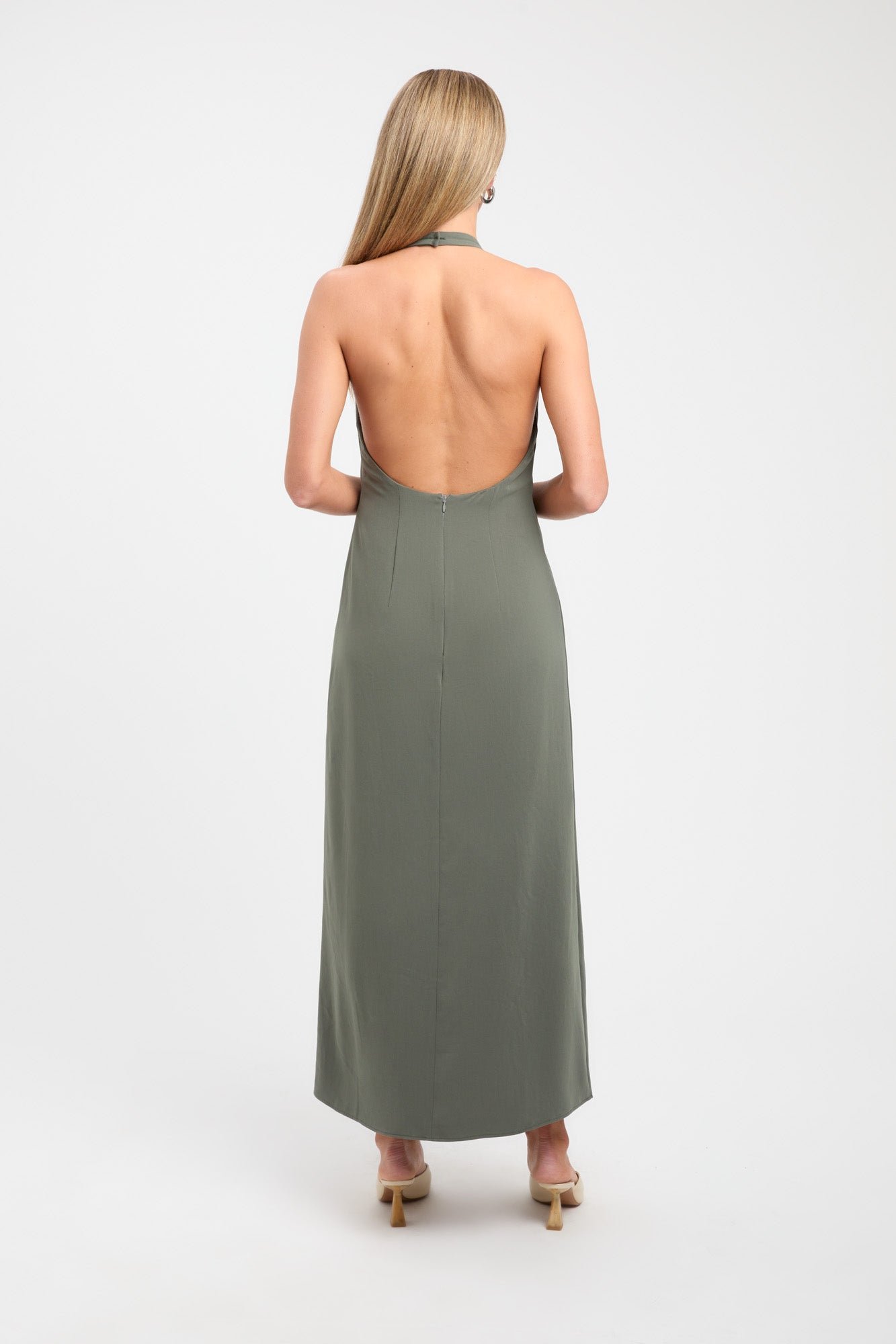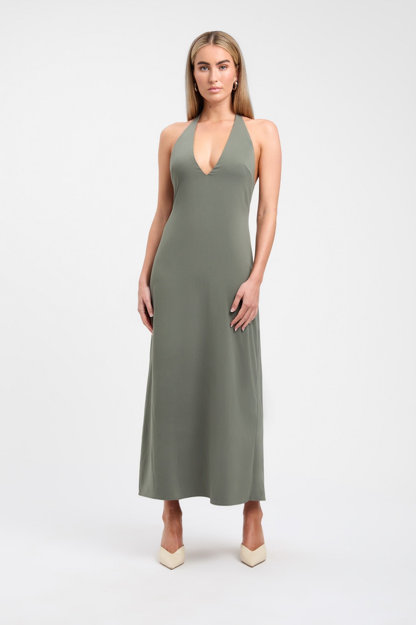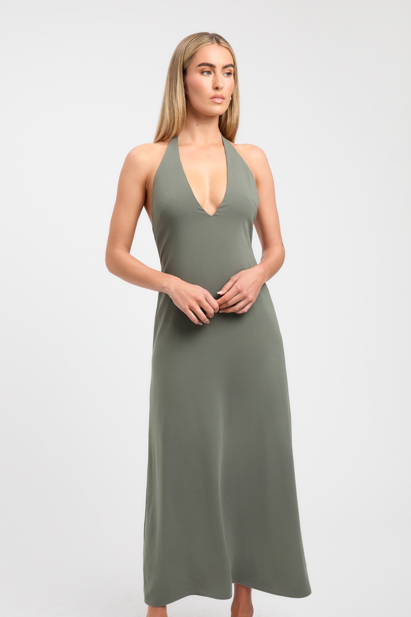 As its name suggests. the Koko Deep Vee Dress features a plunging halter neckline designed to form an everlasting impression. This sleeveless midi style is crafted from our Koko fabrication offering a draped. figure-skimming silhouette with a luxurious finish. The flared midi design completes with a open-back and invisible zip to secure.